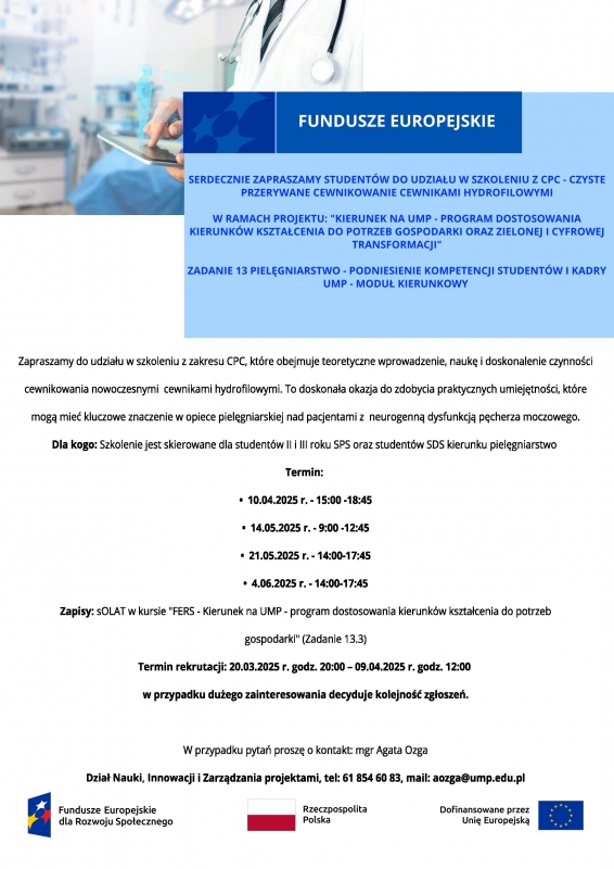 > ZAPRASZAMY STUDENTÓW NA SZKOLENIE Z CZYSTEGO PRZERYWANEGO CEWNIKOWANIA CEWNIKAMI HYDROFILOWYMI